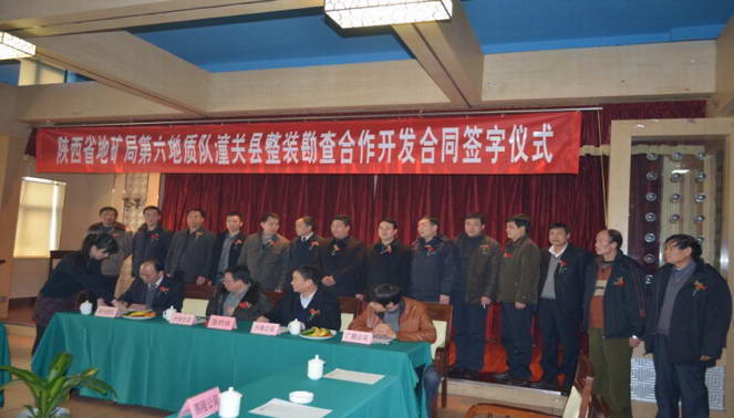 簽字儀式由隊(duì)黨委書(shū)記冀興臣主持,王根寶隊(duì)長(zhǎng)致歡迎詞,我隊(duì)總工程師白和等隊(duì)級(jí)領(lǐng)導(dǎo)及隊(duì)黨政辦、潼關(guān)勘查開(kāi)發(fā)部等部門(mén)負(fù)責(zé)人參加了簽字儀式。
