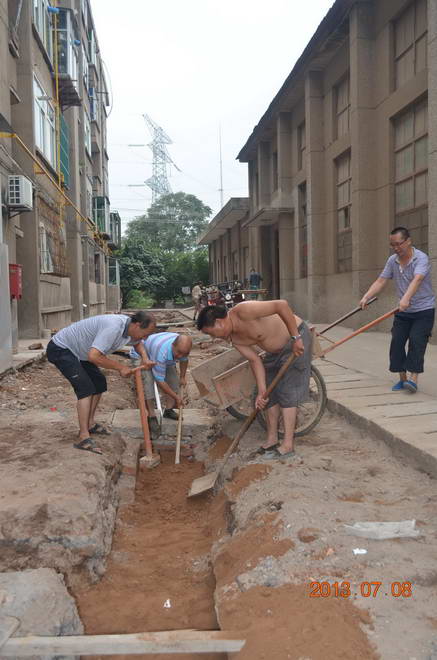 10號家屬樓是第六分公司于上世紀80年代中期修建的一棟老家屬樓。6月下旬,10號家屬樓前出現(xiàn)了地面滲水、裂縫,物業(yè)管理中心迅速派人查找原因,經查發(fā)現(xiàn)其原因是地埋上下上管道年久失修滲水造成。分公司領導了解此事后,隨即召開辦公會議,急職工群眾之所急,在發(fā)展資金緊張的情況下,擠出資金,要求盡快聘請具有資質的單位抓緊施工,盡快使10號樓的住戶正常生活。由于各方努力工作,截止發(fā)稿之日, 10號家屬樓上下水地埋管道改造工程已近尾聲,同時完成了樓前的道路返修硬化。這也是我分公司繼15號樓上下水管道改造之后的又一惠民工程,改善了職工家屬的居住環(huán)境,對單位的和諧穩(wěn)定具有積極的促進作用。