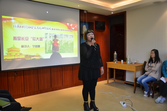 此次報告會共有五位宣講員分別作了聲情并茂的宣講,引起了現場觀眾的共鳴。未央區七旬文明引導員李清源,用自己的親身經歷講述文明故事;工商臨潼分局丁紅軍講述了為外國游客討回26000元的故事;臨潼區西泉街道閆紅,講述半路夫妻的公公對臥病在床多年的婆婆不離不棄的感人故事;帶領農民共同致富的長安區農民企業家寧蔣娟講述了自己的艱辛的奮斗歷程;長安東大的上門女婿劉安民待岳母如親娘,感動鄉鄰,他用行動詮釋了“百善孝為先”的古訓。宣講員以親歷親聞的身邊人身邊事,對社會主義核心價值觀進行了詮釋,激勵和感染了每一位員工,會場不斷爆發出熱烈的掌聲。
