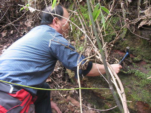 王根寶隊長在留壩縣桑園壩大官長溝之西溝鐵多金屬礦點檢查工作