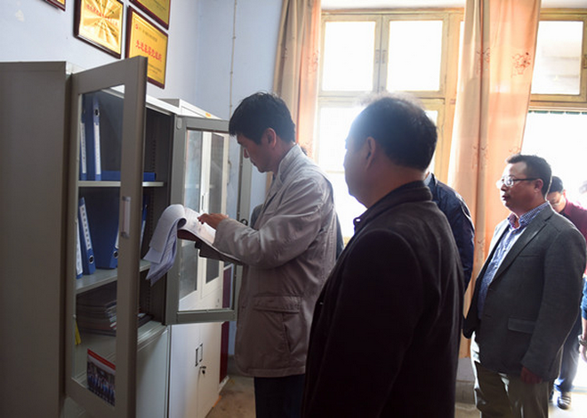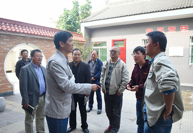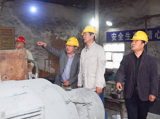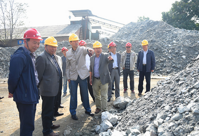隨后,趙董事長一行在隊長劉曉東、隊黨委書記王戰社和總工白和的陪同下驅車前往我隊潼關興地公司秦泰選廠。趙董事長來到礦石堆場,蹲下身子仔細察看礦石品位,詢問礦山開采情況,走進車間檢查生產加工及設備運轉情況。向選廠負責人了解職工收入,叮囑要牢固樹立安全生產意識;與新聘大學生親切交談,關心他們的工作生活,勉勵大家安心工作。趙董事長還走進興地公司黨員活動室,檢查黨支部“兩學一做”學習教育開展情況,翻看黨員學習筆記,并就深入開展學習教育提出了要求。
