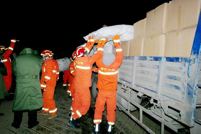 夜晚黃河橋冷風(fēng)刺骨,氣溫低達(dá)-8℃。按照總隊(duì)制定的攔截壩敷設(shè)方案,劉曉東、王和平帶領(lǐng)突擊隊(duì)員頂著凜冽的寒風(fēng),與渭南市、合陽(yáng)縣環(huán)保局工作人員一起搶卸卡車,將鋼絲繩、扳手、鉗子、活性炭包等應(yīng)急器材器具迅速配送到位,隨時(shí)準(zhǔn)備敷設(shè)攔截壩。所有人都在急切地等待著上游的監(jiān)測(cè)結(jié)果。