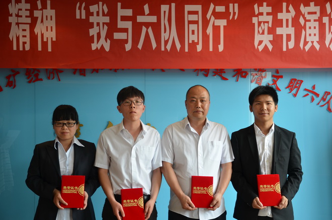 激揚的青春最美麗。選手們的激情演講深深地打動了在場的每一位評委和觀眾,贏得了一陣陣熱烈的掌聲。演講結束,勞動人事部選手馮雪榮獲一等獎,地調所選手夏含、雷扛分獲二等獎,后勤服務中心黃鷹、經濟工作部選手許婷婷、工程公司選手劉科科分獲三等獎。我隊隊長王根寶為獲獎選手頒發了榮譽證書。黨委書記王戰社為獲得2015年度的優秀團員、團干頒發了榮譽證書。